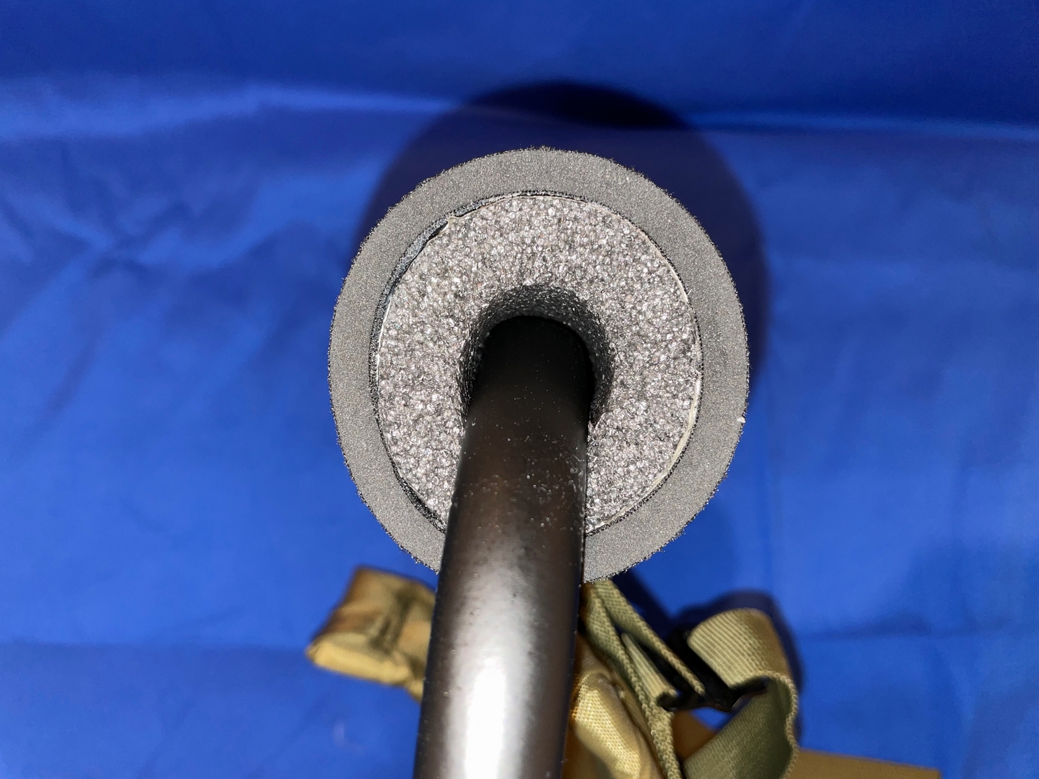 Now the final thing that sets these apart is the neck padding. This does not come standard and requires some customization on your part. The LC-1 frame for the 1984 setup requires a white foam pipe insulator, gaffer's tape, and some black fabric paint. The gaffer's tape is just applied horizontally then vertically on the ends, and the fabric paint is used to paint the ends, while keeping the inside of the tube white. Where can you get a white tube you ask? Well, not Home Depot or other big box home improvement centers. We found ours at Grainger, remember this as it will come back in next week's segment. You want one with a 1/2 inside diameter as it will not go all the way around the frame, just the end as seen above. See this